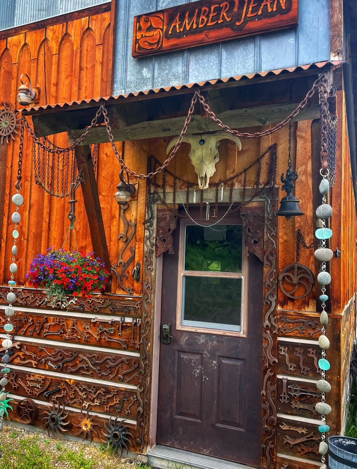 Cliff had so many tire chains draped from the stout branches of the trees around his cabin, it was as if the forest itself wore his handiwork. I’ve since used those chains to adorn not only my studio, but also his cabin—now a vacation rental—and his old sawmill, which is slowly being transformed into an office and workshop for Raymond.